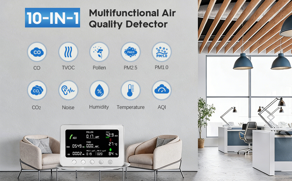 Stop guessing about your air quality. This device monitors 11 vital metrics simultaneously: